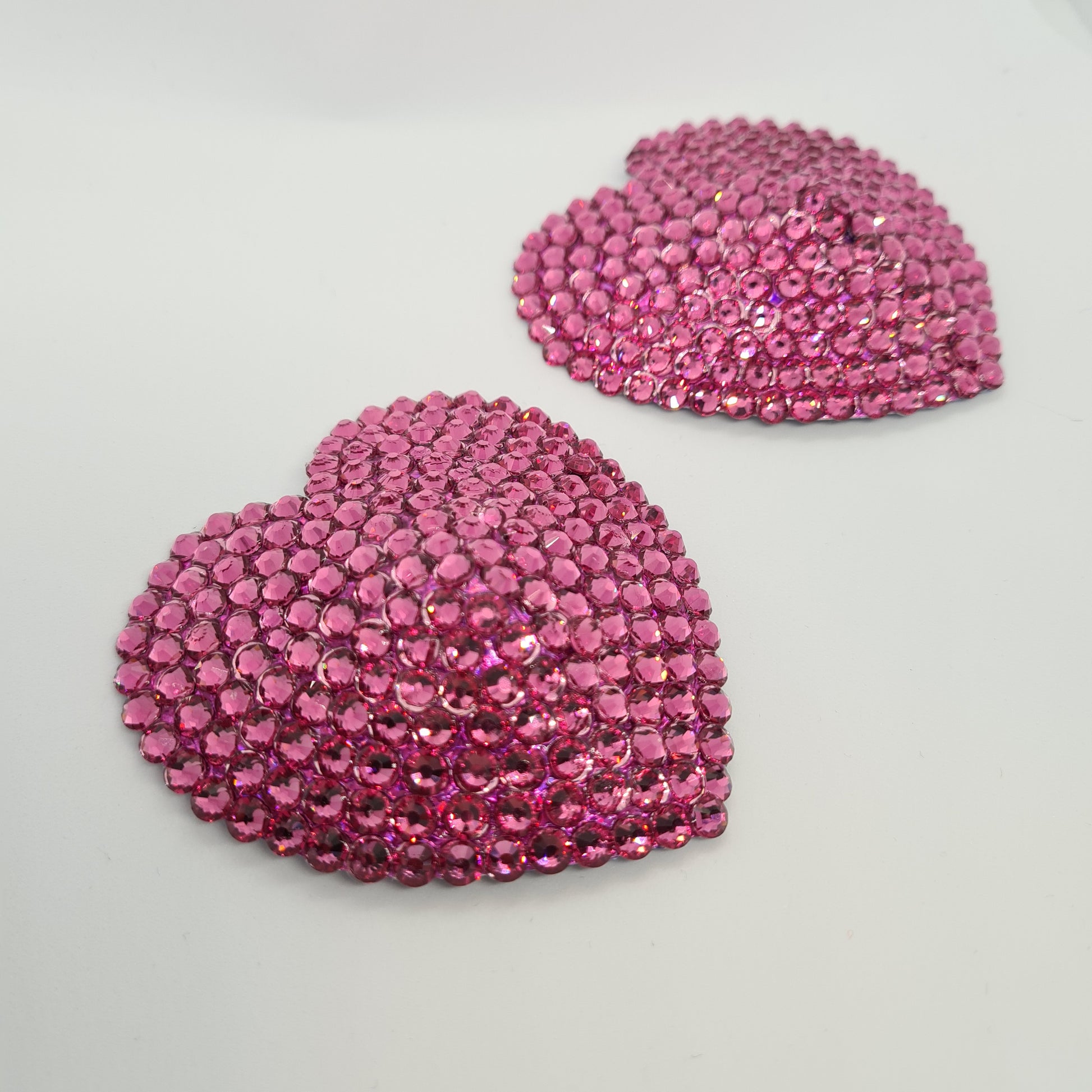 These pasties will have a heart-shaped base encrusted with SS20 glass rhinestones and can be purchased as pasties only or with attachments (spinner and/or tassels) to convert into nipple tassels